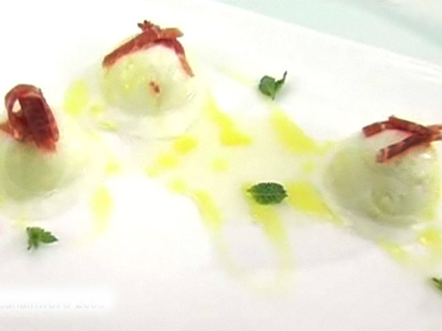 Десерт из сочной дыни.Состав:дыня — 500 гр;сахар — 140 гр;яичный белок — 100 гр;вода — 100 гр.