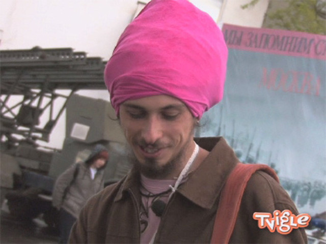 Антон сочетает дизайнерскую одежду и аксессуары, в основном, привезенные из-за границы. Главный акцент в образе – розовый шарф, повязанный вокруг головы.